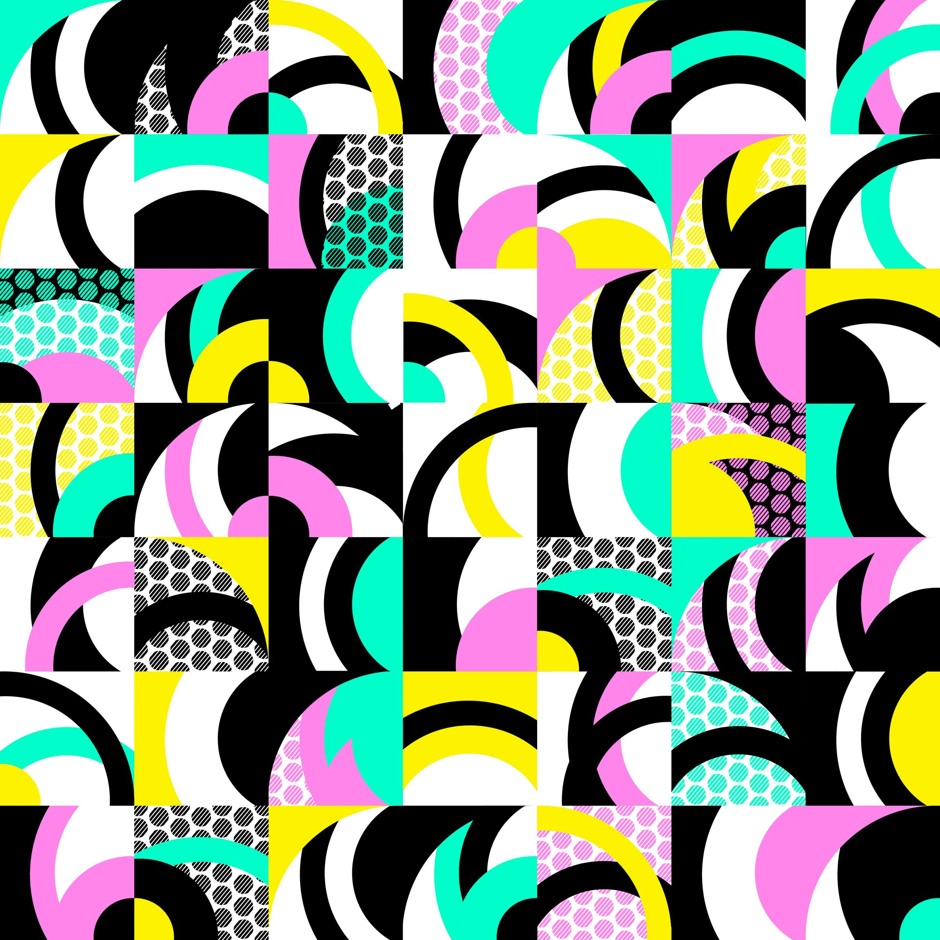 A poster series made up of conditions and variables developed to establish an image sequence that results in a unique visual composition. These compositions take inspiration from retro, digital, and punk themes. The poster on the right is inspired by contemporary industrial designer Karim Rashid and his signature style: an invitation to reimagine the ordinary with a burst of color, sleek lines, and a touch of the extraordinary
